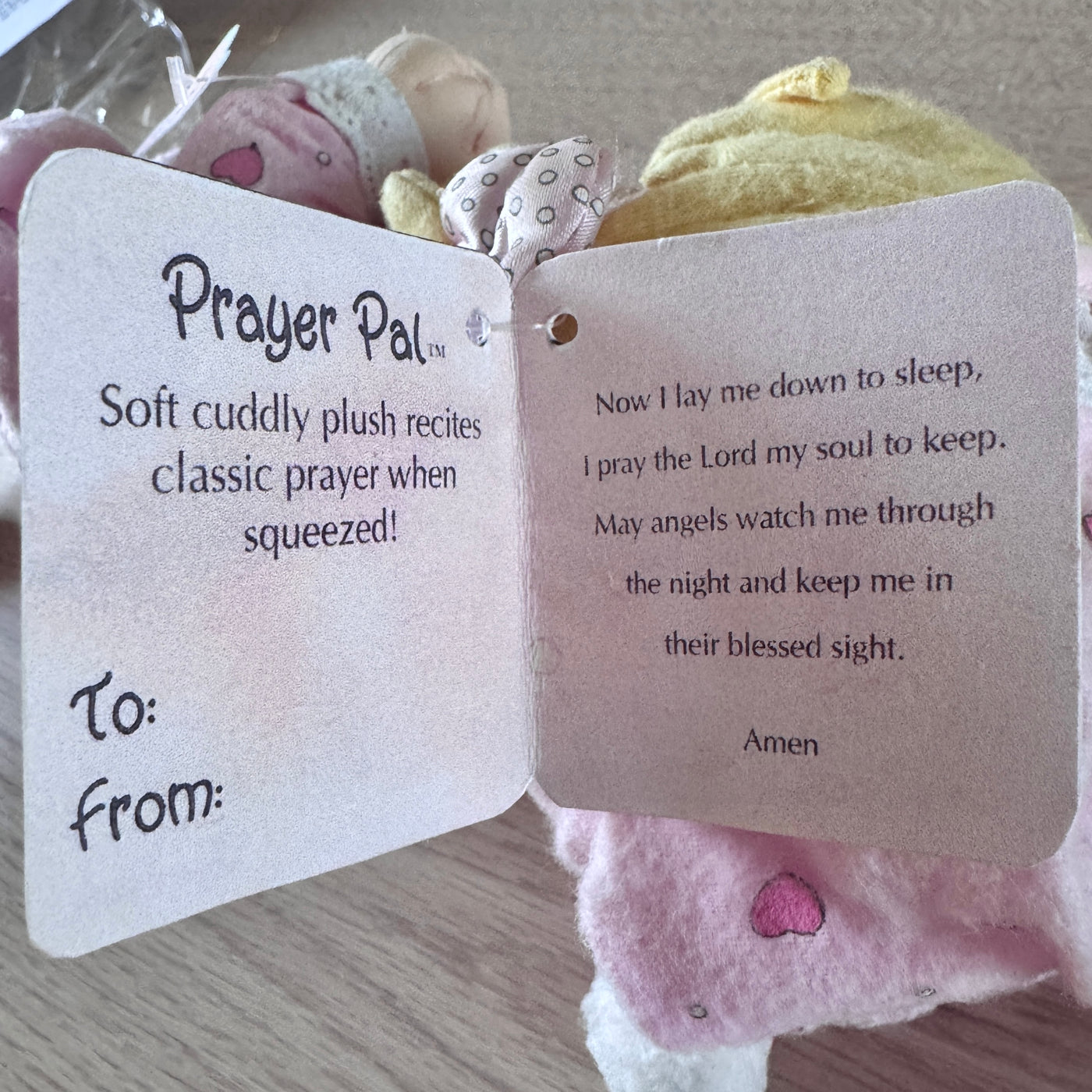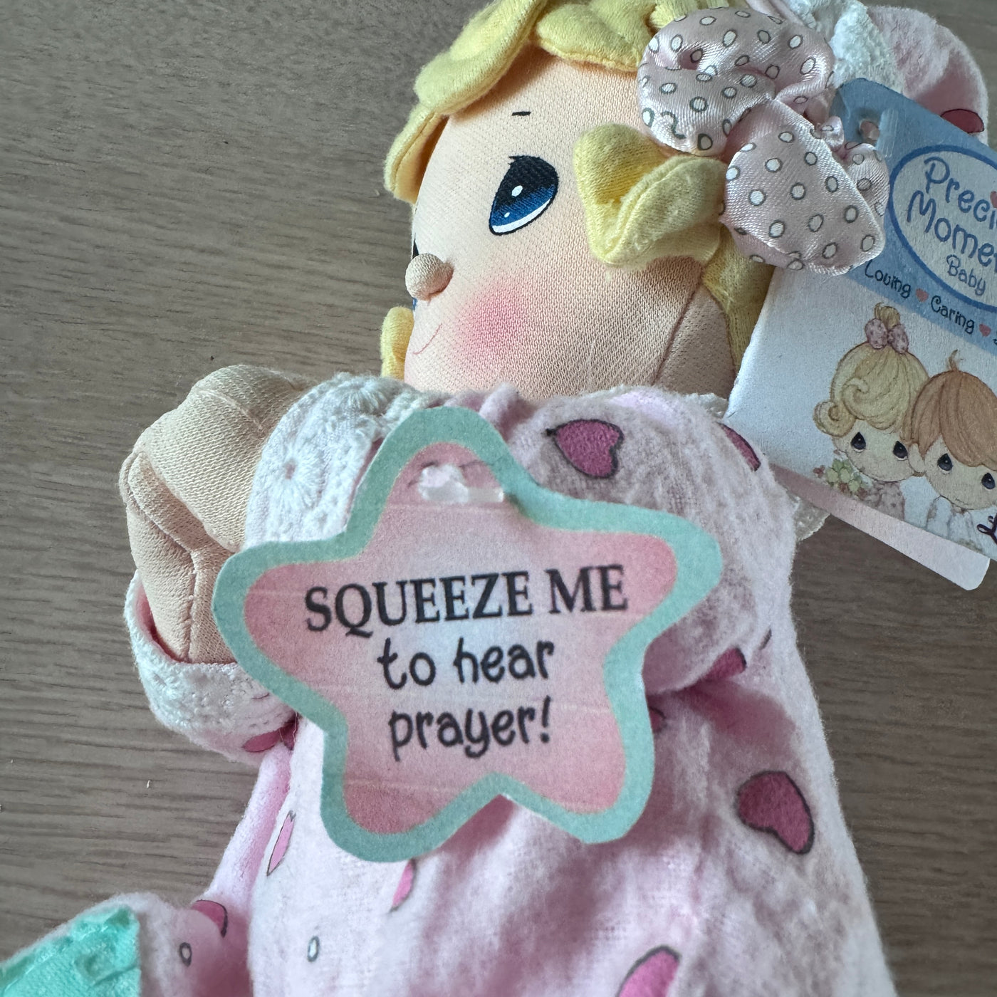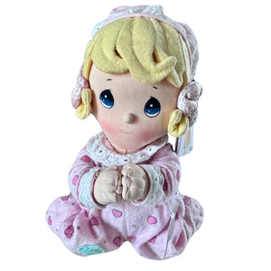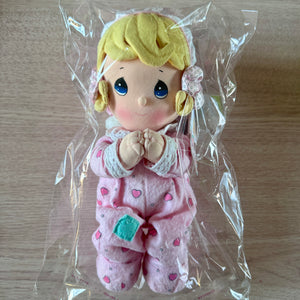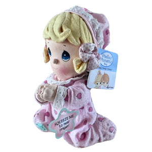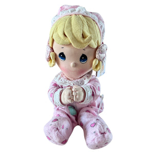 Poupée en peluche vintage parlante Precious Moments 9" pour bébé fille, en chiffon doux, pyjama rose, dit Bedtime Prayer Pal, jouet de prière, cadeau de fête prénatale