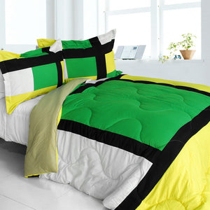 Parure de lit pour adolescent garçon avec blocs géométriques verts, noirs, jaunes et blancs, ensemble de couette moderne pour lit double, grand lit ou grand lit