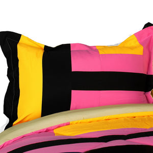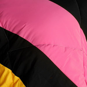 Cette parure de lit moderne et tendance fera une déclaration audacieuse dans votre chambre avec son grand patchwork lumineux et coloré, son motif géométrique en rose clair et vif combiné au noir et au beige. Lavable et séchable en machine. Matériau : housse en polyester microfibre 300 g/m² et rembourrage en polyester hypoallergénique, matelassage doux et haute ténacité.