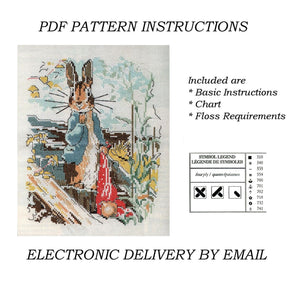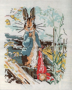Beatrix Potter Peter Rabbit in the Garden with Onions & Red Blanket Counted Cross Stitch PDF Pattern Chart Instructions UK Anchor
