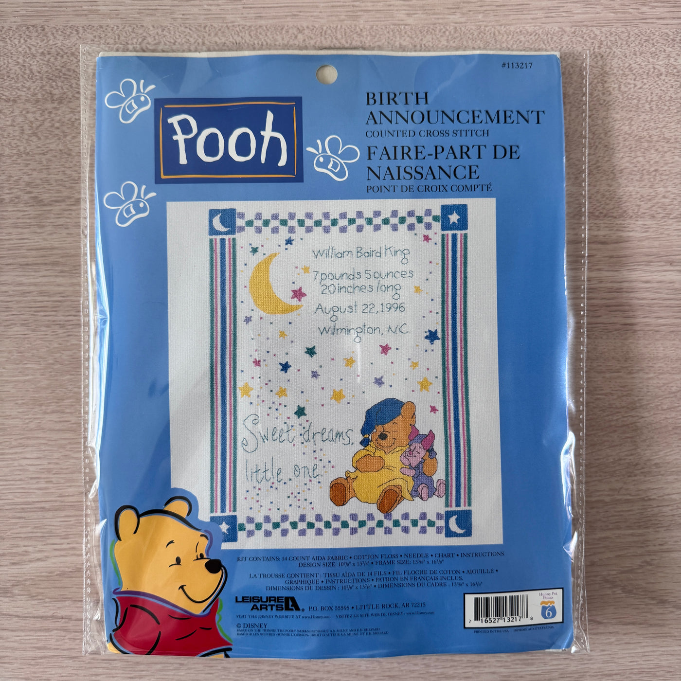 Kit de point de croix compté vintage Disney Winnie l'ourson et Porcinet endormis Sweet Dreams ou tableau de motifs PDF Souvenir de naissance de bébé Échantillon de disque Cadeau souvenir 11" x 14" 1132-17