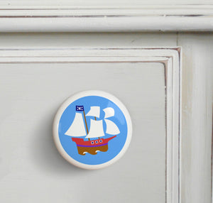 Lot de 4 boutons de tiroir en céramique pour enfants Pirates 1 1/2" - Capitaine pirate Pirate Ship Treasure