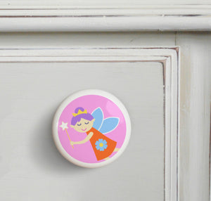Ensemble de 4 boutons de tiroir en céramique pour enfants, motif princesse fée rose, 1 1/2"