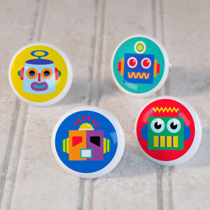 Ensemble de 4 boutons de tiroir en céramique pour enfants Robots 1 1/2"
