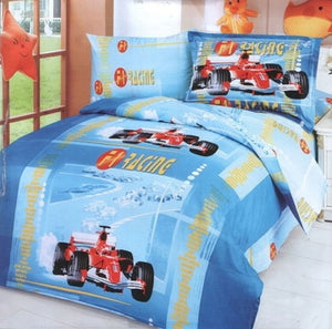 Parure de lit élégante en coton avec housse de couette pour lit double Motif voiture de course Formule 1 Rouge ou bleu