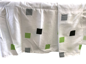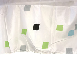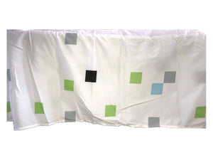 Jupe de lit à imprimé pixel pour lit double, queen size, blanc avec pixels verts, gris, bleus et noirs