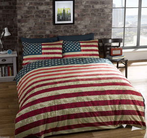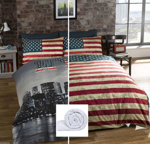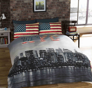 Housse de couette drapeau américain USA / NYC New York Skyline Parure de lit double, complète ou queen size Ensemble de housse de couette patriotique réversible