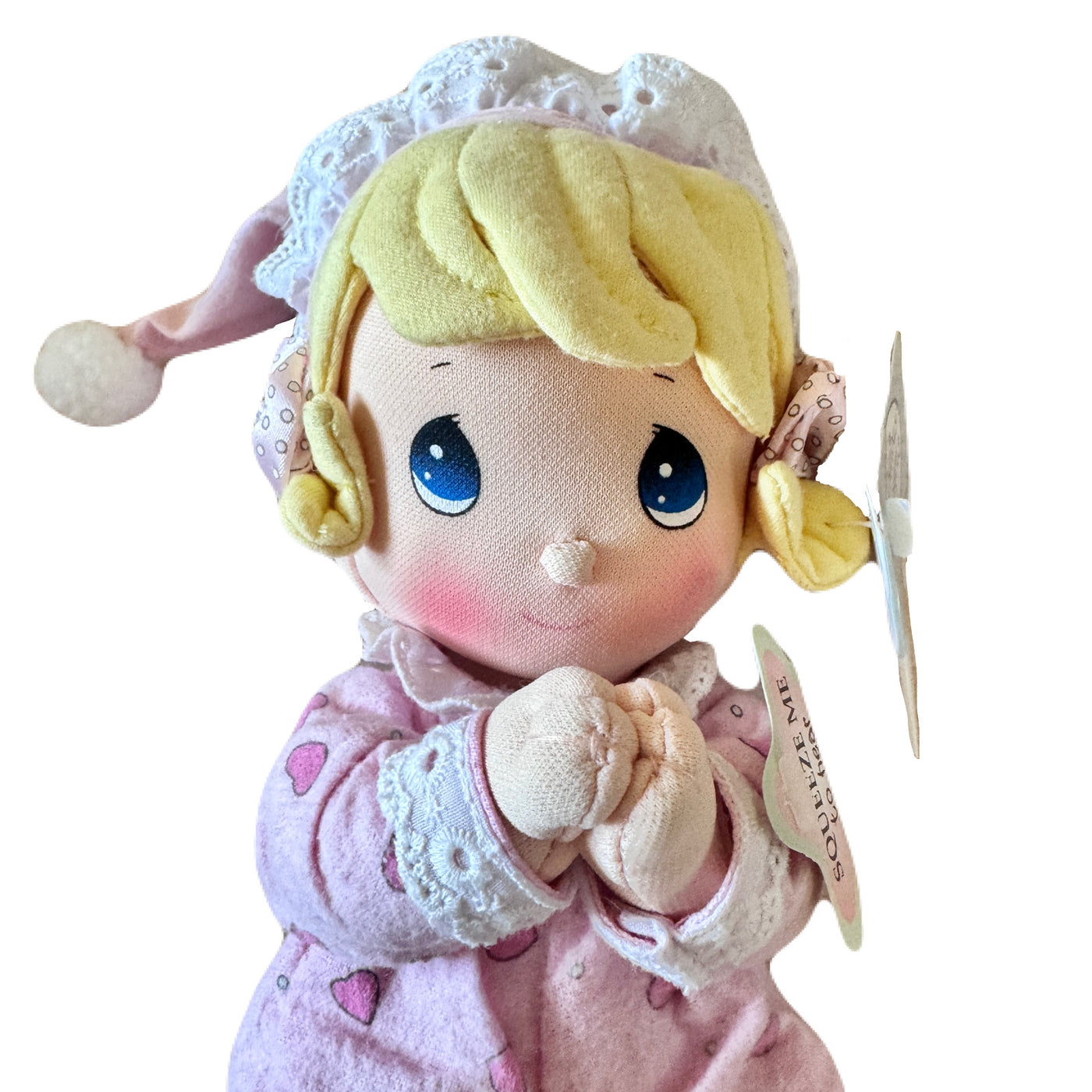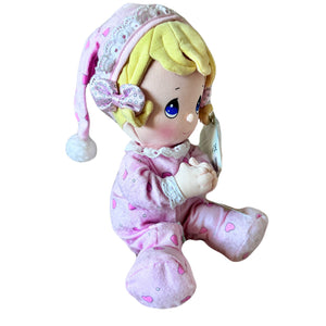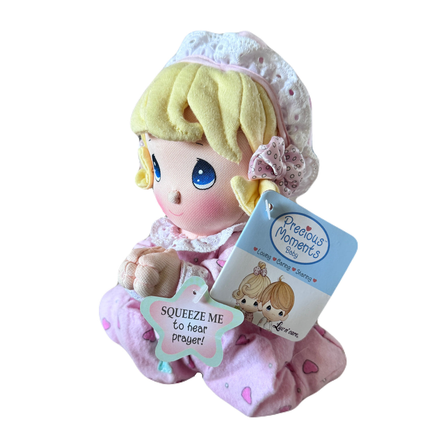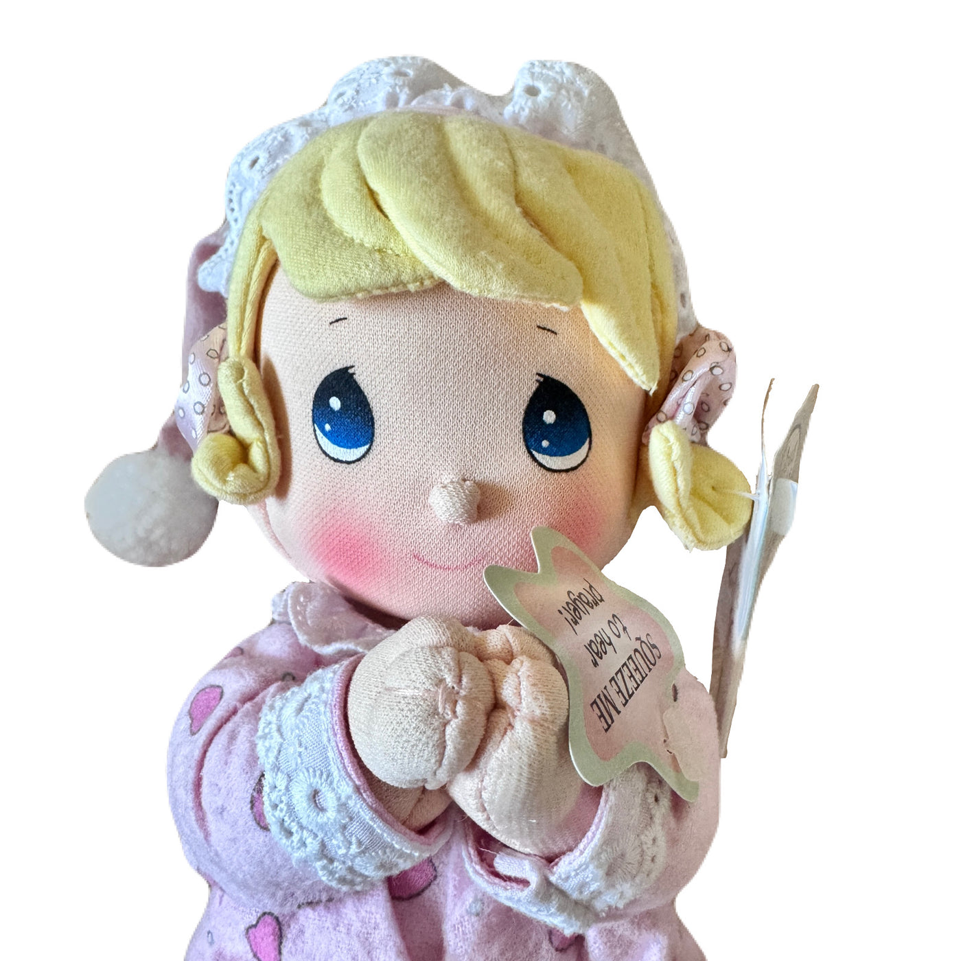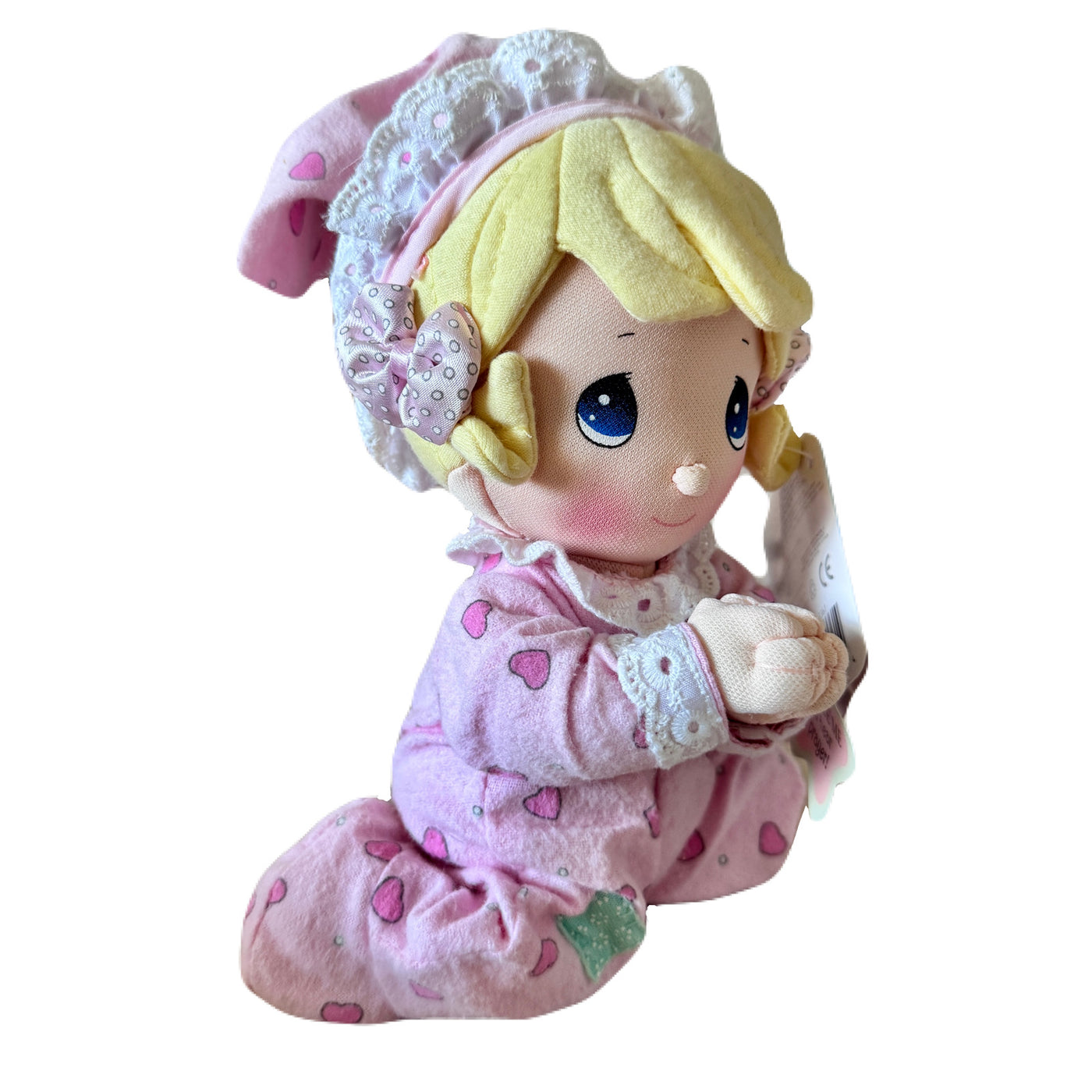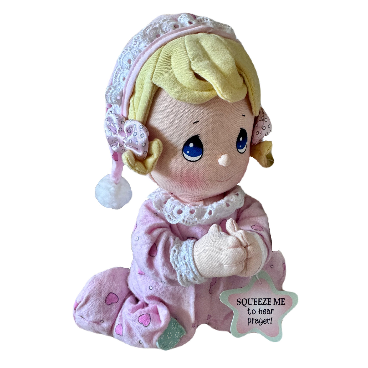 Poupée en peluche vintage parlante Precious Moments 9" pour bébé fille, en chiffon doux, pyjama rose, dit Bedtime Prayer Pal, jouet de prière, cadeau de fête prénatale