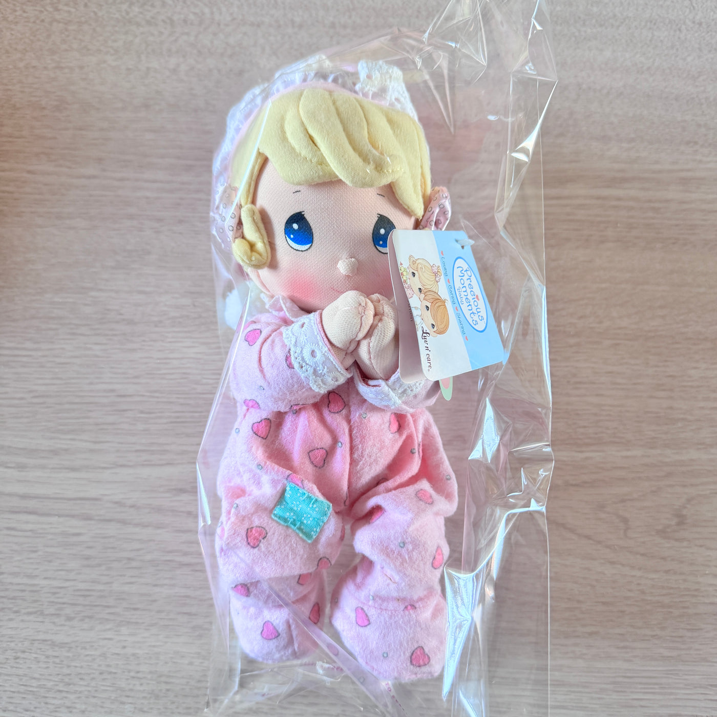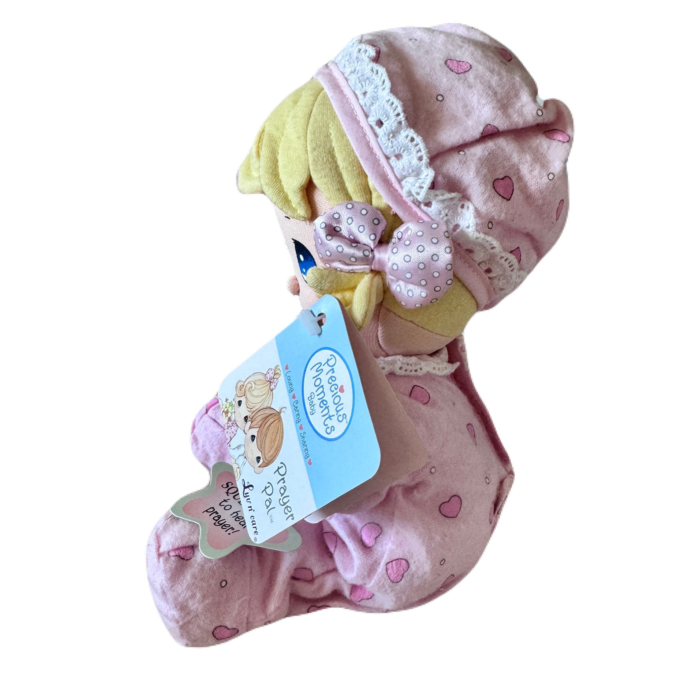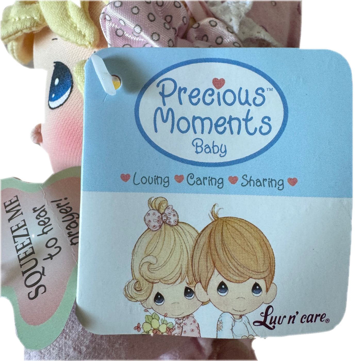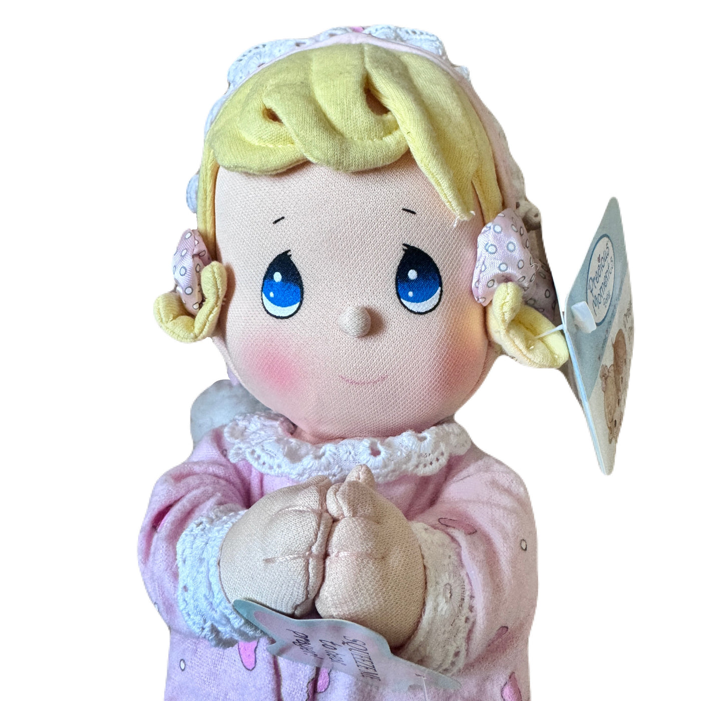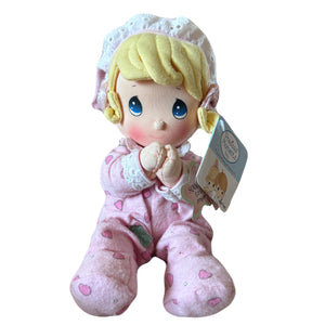 Poupée en peluche vintage parlante Precious Moments 9" pour bébé fille, en chiffon doux, pyjama rose, dit Bedtime Prayer Pal, jouet de prière, cadeau de fête prénatale