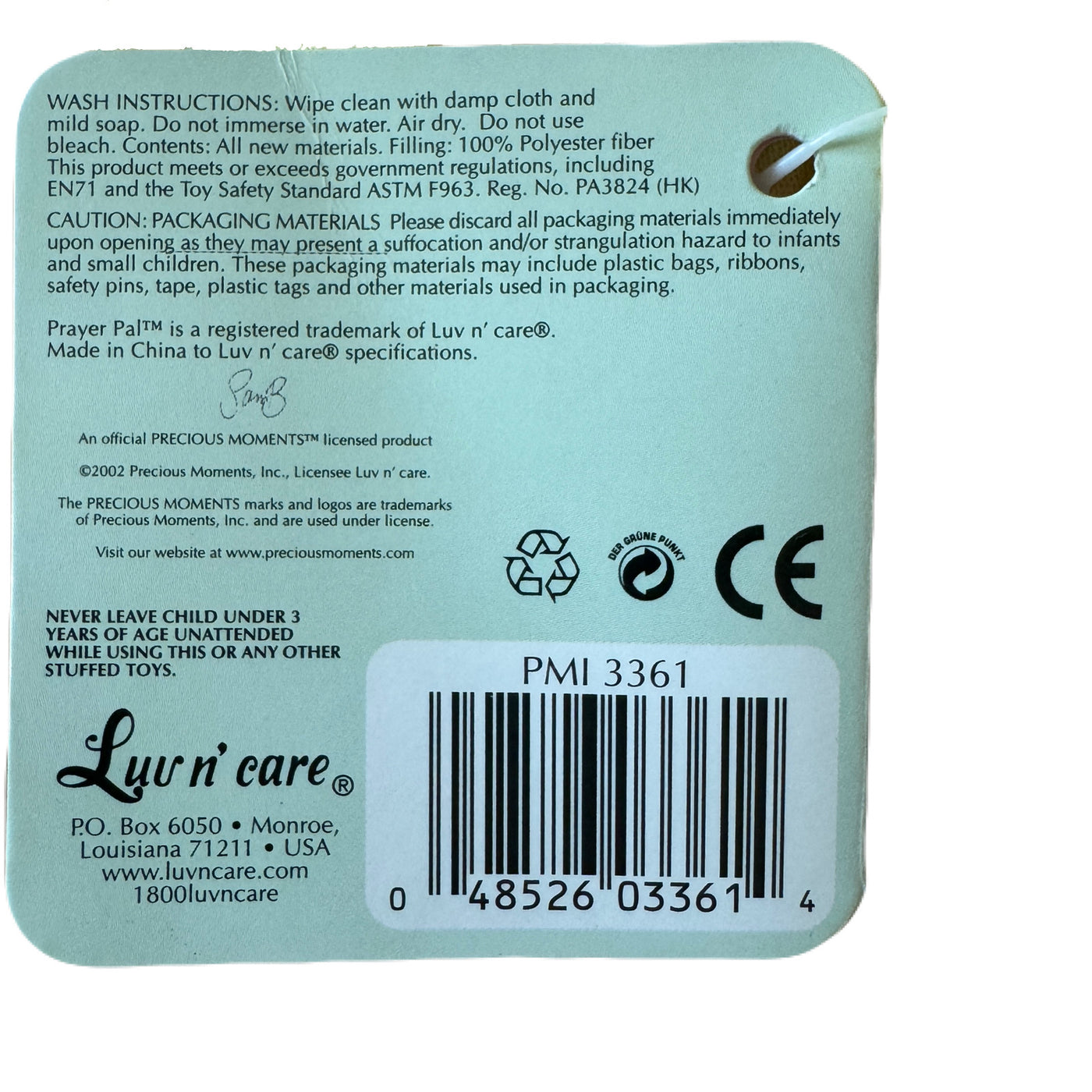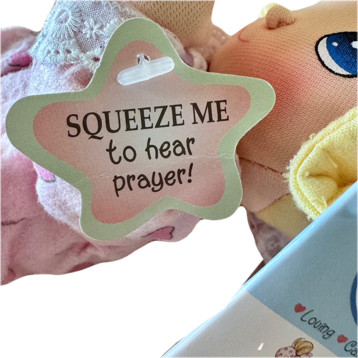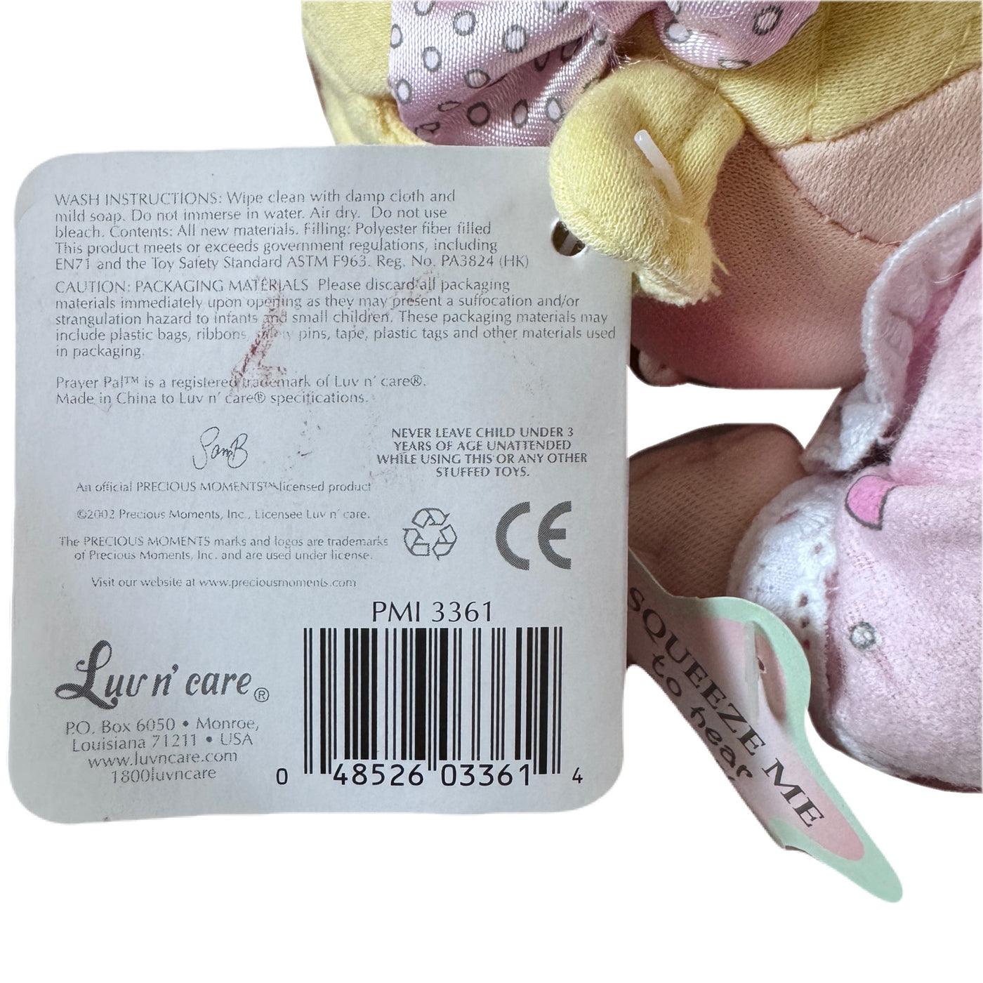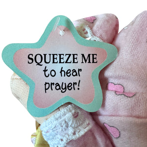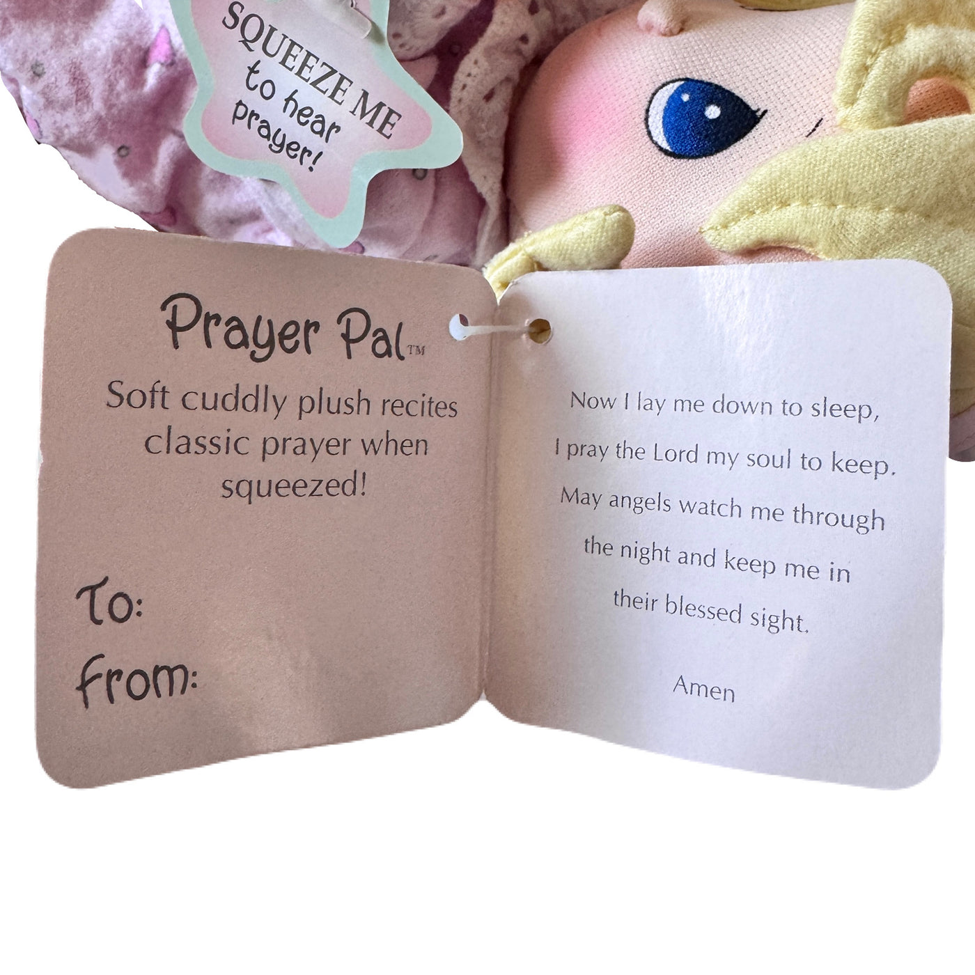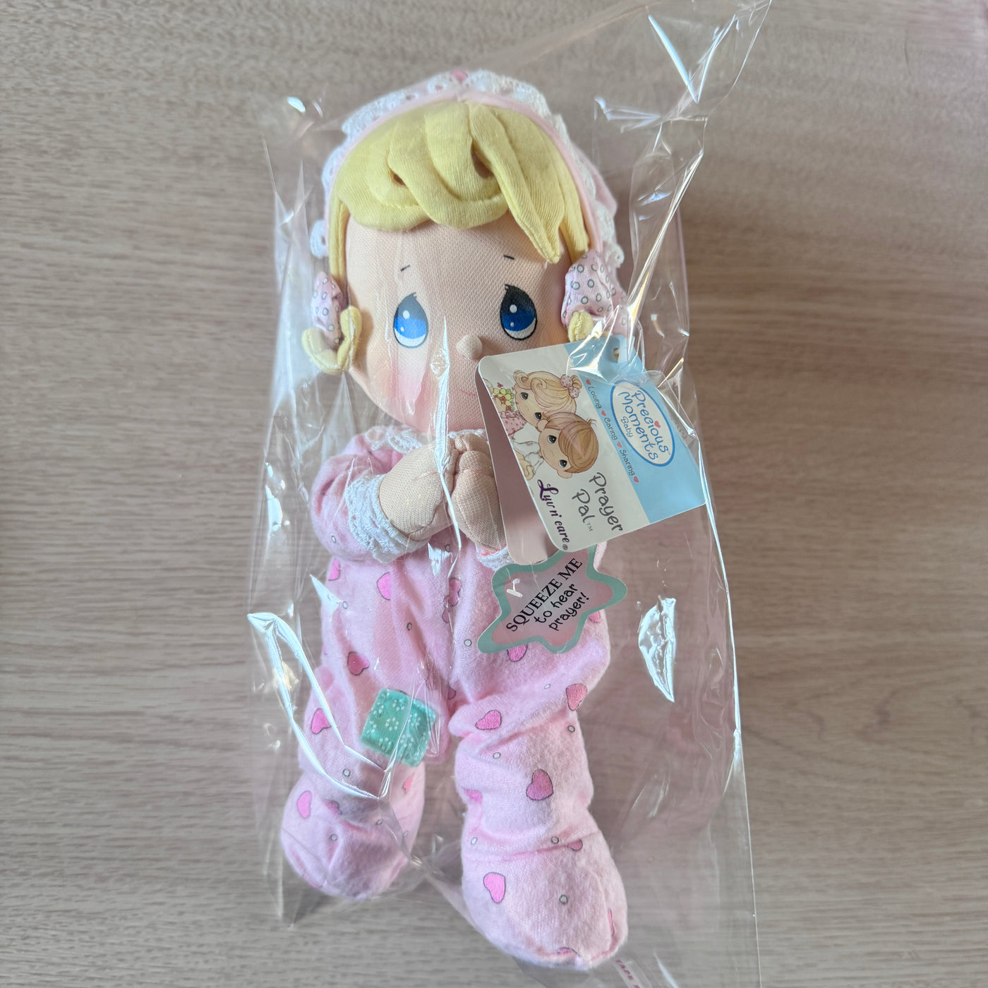 Poupée en peluche vintage parlante Precious Moments 9" pour bébé fille, en chiffon doux, pyjama rose, dit Bedtime Prayer Pal, jouet de prière, cadeau de fête prénatale