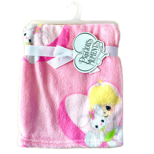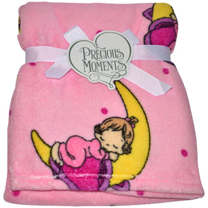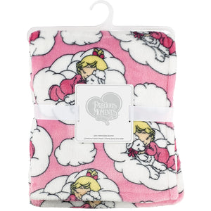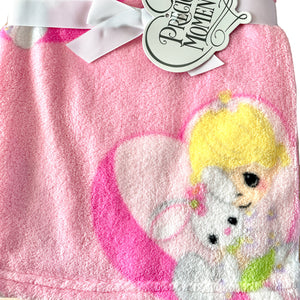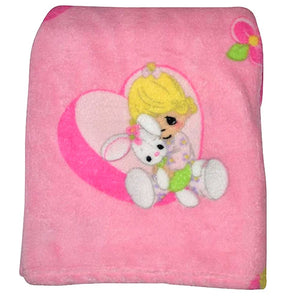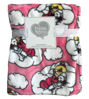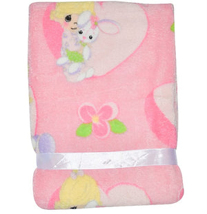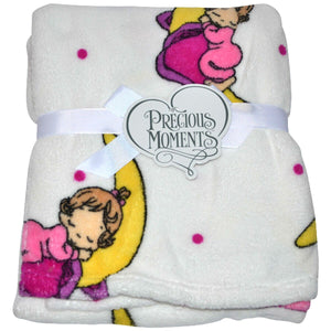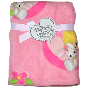 Couverture en polaire corail douce et peluche Precious Moments pour bébé, cadeau de naissance rose ou blanc pour fille avec lapin, agneau ou lune
