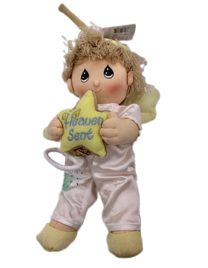 Poupée en peluche Angel Boy vintage de 12 pouces Precious Moments de 2003 avec ficelle à tirer pour berceau/poussette musicale « Heaven Sent » avec étoile, objet de collection rare