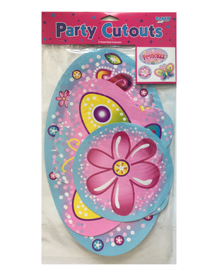 Autocollants muraux pour fête ou chambre de princesse rose - Princesse, fleur, papillon 14"