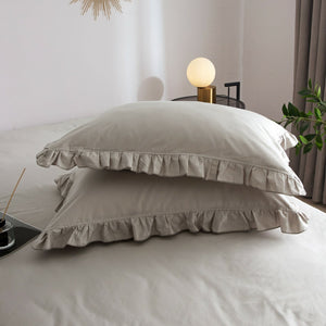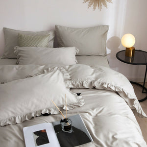 Parure de lit de luxe en coton gris, élégante et romantique, avec bordure à volants, pour lit double, queen, king size, ensemble de créateurs