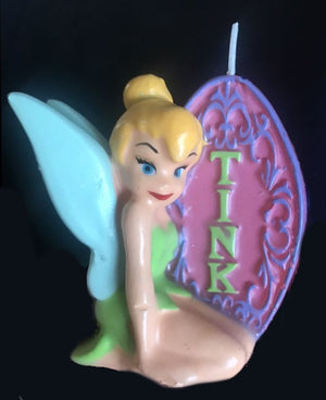 Bougie moulée en forme de Fée Clochette Disney Fairies pour gâteau d'anniversaire 3" - Médaillon Tink Wilton Industries Vintage