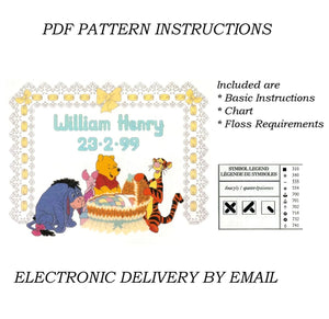 Rare Disney Winnie l'ourson Rock-A-Bye Baby Birth Announcement Sampler Counted Cross Stitching PDF Pattern Chart Instructions H21 Debbie Minton Designer Stitches 1999