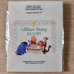 Rare Disney Winnie l'ourson Rock-A-Bye Baby Birth Announcement Sampler Counted Cross Stitching PDF Pattern Chart Instructions H21 Debbie Minton Designer Stitches 1999