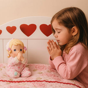 Poupée en peluche vintage parlante Precious Moments 9" pour bébé fille, en chiffon doux, pyjama rose, dit Bedtime Prayer Pal, jouet de prière, cadeau de fête prénatale