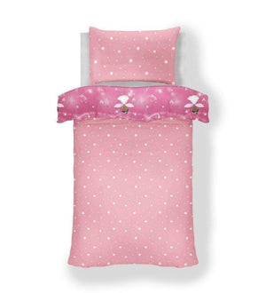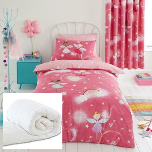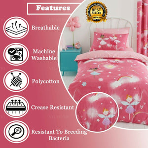 Parure de lit rose magique pour fille avec housse de couette et drap pour lit double Motif fées Arcs-en-ciel, étoiles et cœurs