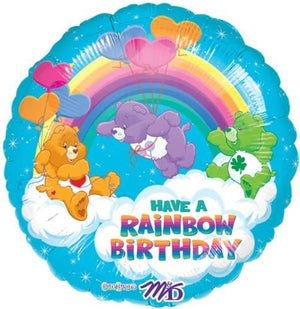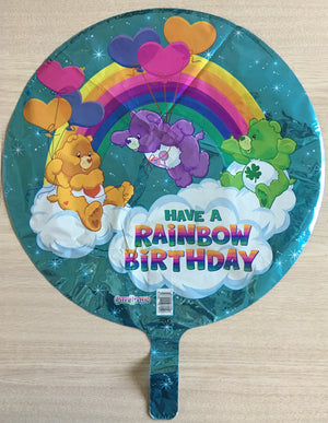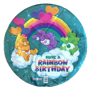 Ballon de fête d'anniversaire rare Care Bears Happy Birthday 18" bleu prismatique HAVE A RAINBOW BIRTHDAY CareBears Vintage