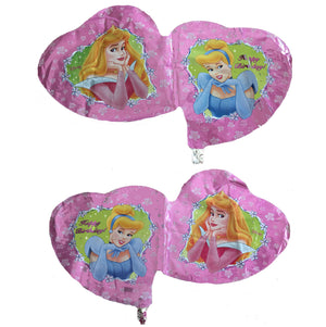 Ballon géant en forme de cœur de 36 pouces en forme de cœur avec deux cœurs et motif princesses Disney Aurora Cendrillon pour fête d'anniversaire rose