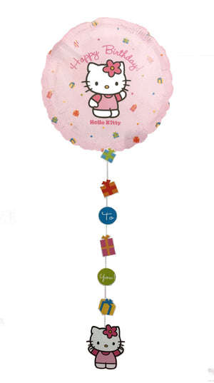 Nouveau ballon de fête Jumbo Hello Kitty Happy Birthday 54" rose prismatique Drop-A-Line Vintage