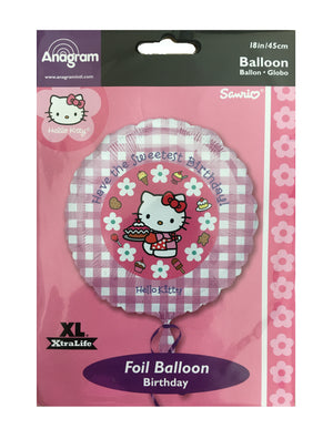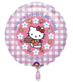 Ballon de fête à carreaux vichy rose Hello Kitty Sweetest Happy Birthday avec gâteau 18"