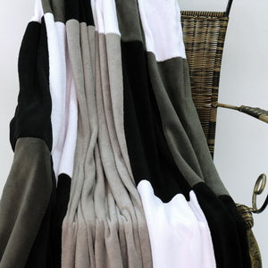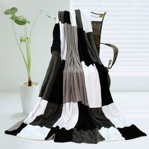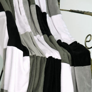 Diverses couvertures polaires à rayures et patchwork noires et blanches grises pour lit double ou complet