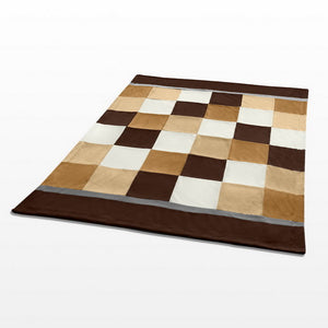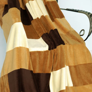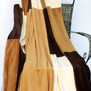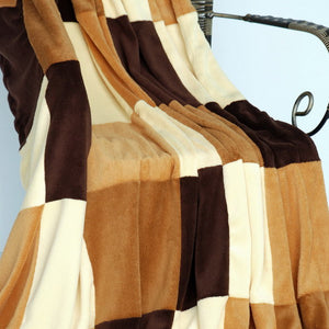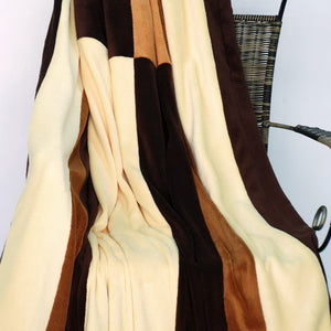 Couvertures polaires pour enfants et adolescents, patchwork, marron, beige, gris et rayées, pour lit double ou complet