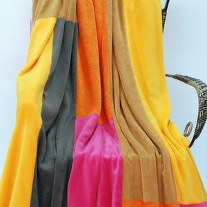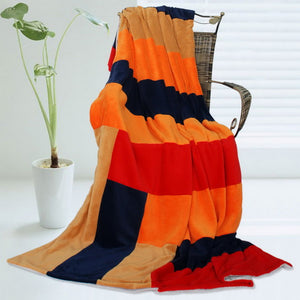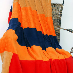 Diverses couvertures polaires rayées orange, jaune, rose et marron pour enfants et adolescents, taille double ou complète