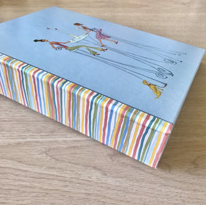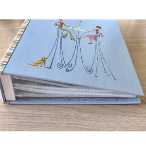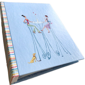 Album photo bleu chic et moderne, amis et chien, personnage de dessin animé bleu avec rayures arc-en-ciel, 200 photos, 7" x 10" amusant et fantaisiste