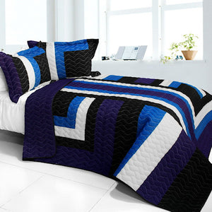Parure de lit moderne à rayures géométriques bleues, noires, violettes et blanches pour adolescent, ensemble de couettes pour lit double/queen size, couvre-lit matelassé élégant