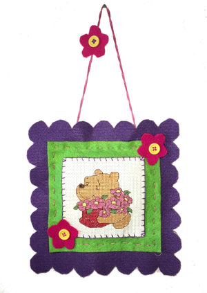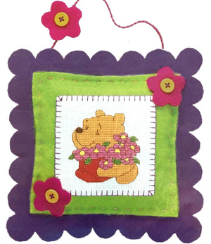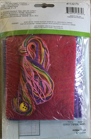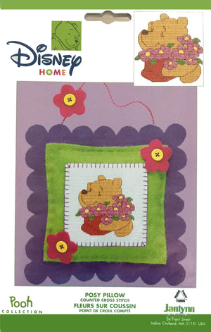 Kit de bricolage souvenir au point de croix compté « Posy Pillow » de Disney Winnie l'ourson avec des fleurs, 20,3 x 20,3 cm, cadeau d'anniversaire 1132-75