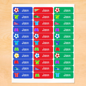 Ces étiquettes imperméables personnalisées pour garçons sont un succès ! Comprend des ballons de football, des uniformes, des fanions et le nom de votre tout-petit !