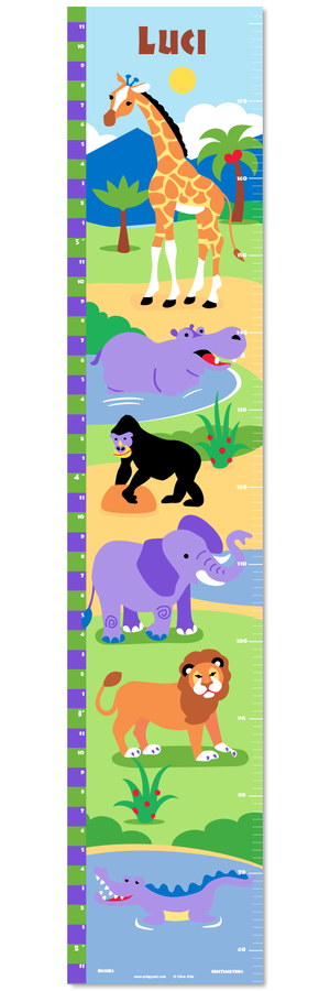 Tableau de croissance personnalisé pour enfants Jungle Safari Animaux sauvages Autocollant ou toile