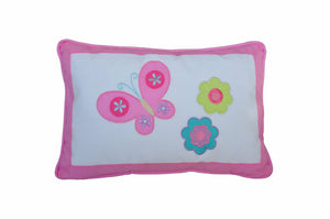 Coussin décoratif en coton avec papillons et fleurs roses 45,7 x 30,5 cm
