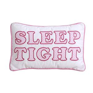 Coussin décoratif en coton rose « Sleep Tight » 15" x 18"