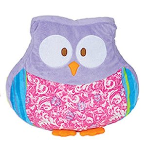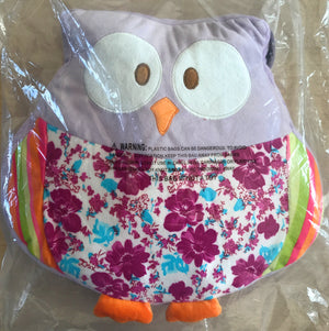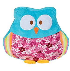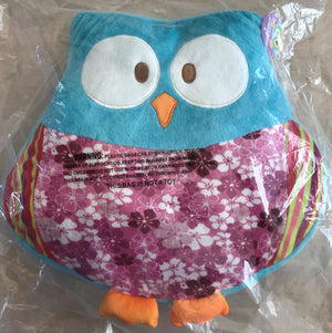 Coussin en peluche hibou 15" x 14" bleu ou violet imprimé floral en forme de super doux pour fille, décoration de chambre à coucher bleue ou violette