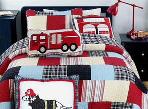 Coussin décoratif en coton avec camion de pompiers rouge 22" x 11"