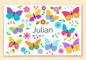 Set de table personnalisé pour enfants avec papillons printaniers 18" x 12" avec alphabet - Custom USA