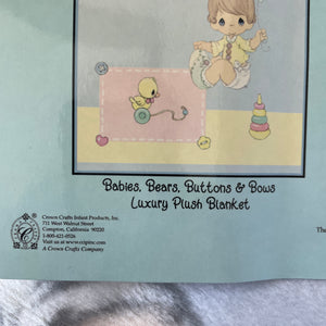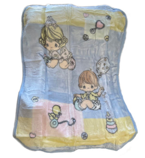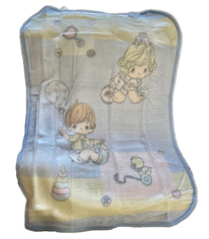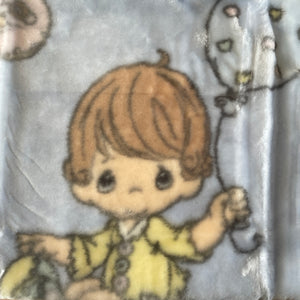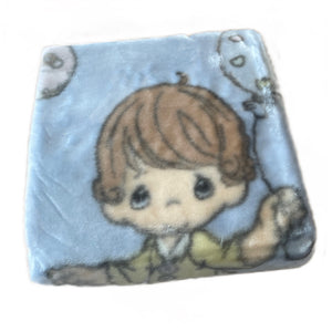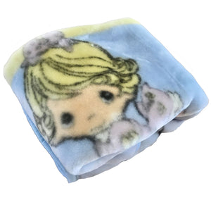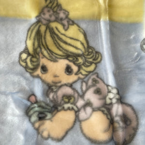 Couverture pour bébé vintage Precious Moments, couverture de luxe en polaire à poils longs, couverture de berceau, 30" x 45", velours épais, minky, jouets de jeu pour garçons et filles, bleu clair
