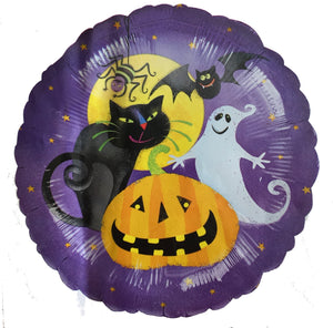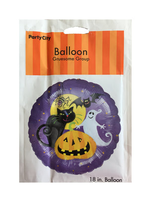 Ballon de fête Halloween violet de 18 pouces avec citrouille, chat, fantôme, chauve-souris, araignée