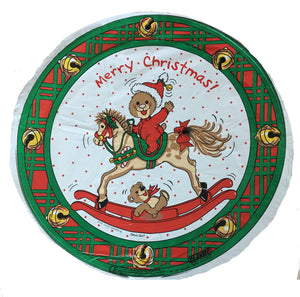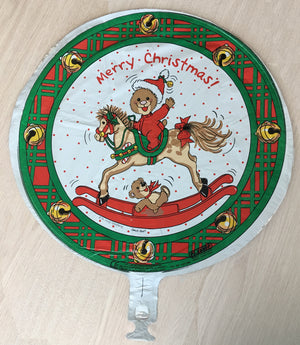 Ballon de fête Joyeux Noël 18" du zoo de Suzy Ollie et Willie sur un cheval à bascule