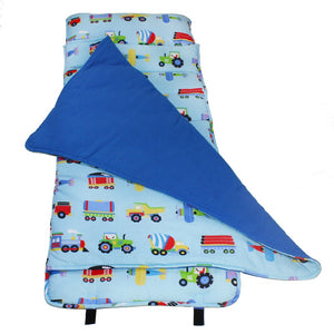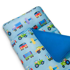 Tapis de sieste bleu pour enfants, trains, avions, camions de pompiers - Sac de couchage pour enfant/jeune garçon