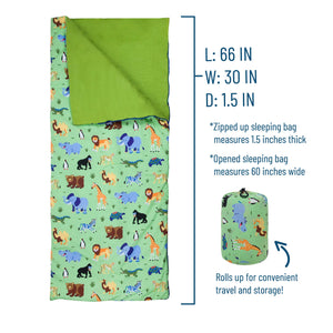 Sac de couchage pour enfants Jungle Safari Animals Green 30" x 66"