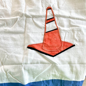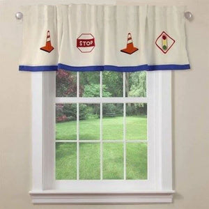 Cantonnière de fenêtre pour enfants Construction Zone pour garçons en coton blanc bleu brodé et doublé 18 x 70