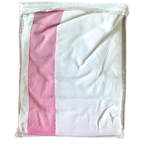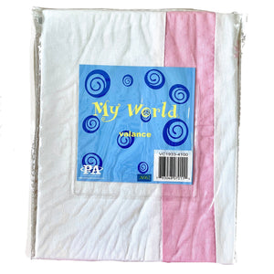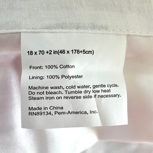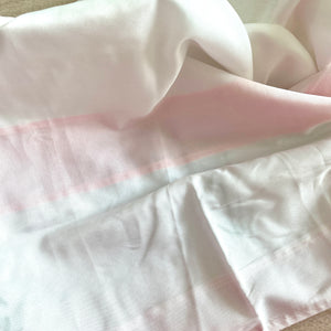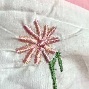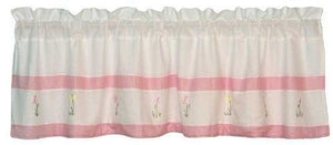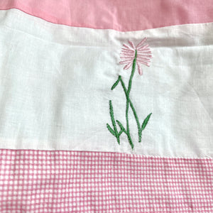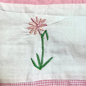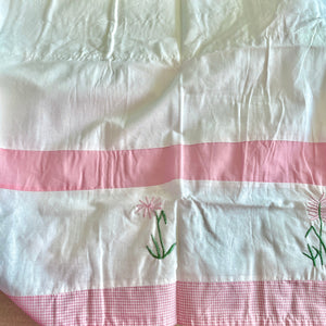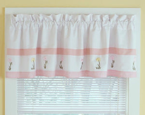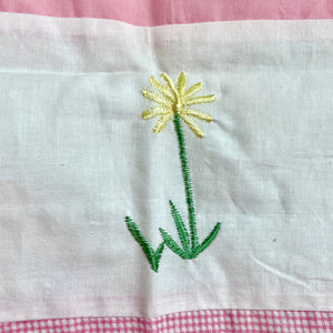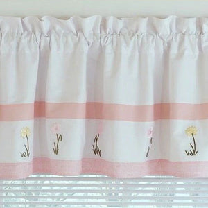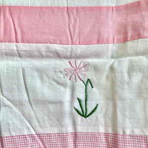 Cantonnière élégante en coton blanc et rose pastel à rayures vichy brodées de fleurs des prés doublée 18" x 70"