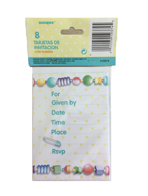Cartes d'invitation pour baby shower en forme de canard en caoutchouc 8 CT - Pois jaunes