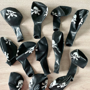 Ballon de fête en latex noir/blanc avec tête de mort et os croisés de 11 pouces Pirate Halloween Cross Bones