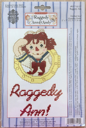 Ce kit de point de croix compté sur le thème classique de Raggedy Ann & Andy présente l'adorable Raggedy Ann ou Andy habillé en marin saluant depuis la fenêtre d'un bateau.
